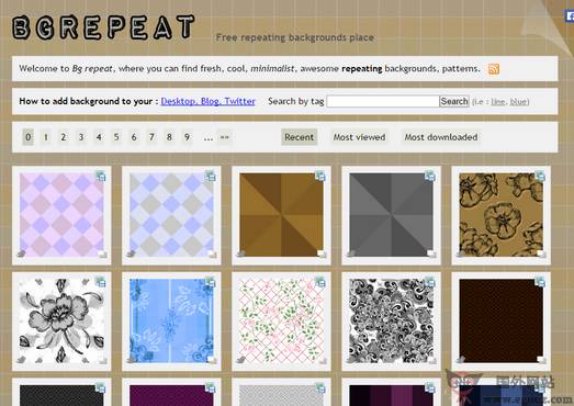 BGrepeat:免费四方连续背景图案网是一个提供四方连续背景图片的素材站点,一般使用背景大图即消耗流量有影响网站打开速度,而四方连续图片可以通过CSS控制来延伸上下左右,不过要制作四方...