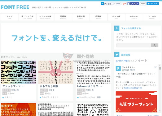 Font Free 是一个提供免费日文字体的站点,该网站收录了大量的日语字体,提供字型预览图、说明、授权方式、作业系统、类型等等相关资讯,其中不乏许多可用于商业用途的免费日文字型可以...