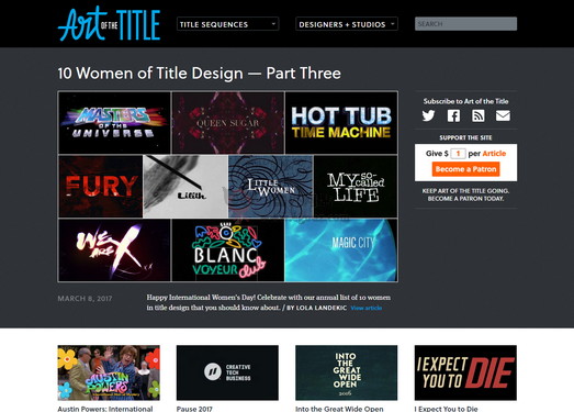 Art of the Title是一个专业研究诸如电影、电视、宣传片、游戏等行业的视频内容片头设计的站点,网站有Lola Landekic 和Wil Perkins两人于2007年创办,同时也有很多供稿人提供研究文章。...