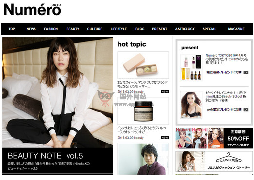 Numero Tokyo 是日本版的大都会国际时尚杂志网站,秉承法国Numero杂志的特点,针对日本的女性群体创办的日本版时尚杂志,坚持独特、简约、清晰、现代的杂志美学,令人惊艳的图片影像,令人...