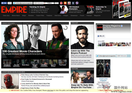 帝国杂志(Empire Magazine)是英国销售量最高电影杂志之一,最受影迷欢迎、最权威的老牌电影月刊杂志,第一期杂志于1989年7月出版,除了在英国发行外也在美国,澳大利亚,土耳其,俄罗斯和葡...