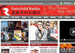 加拿大中文电台(Fairchild Radio)是北美最大的华语电台,隶属于新时代传媒集团旗下,于1993年创办。该电台除了提供中文电台节目外,还提供其他多元节目,比如温哥华(AM1470/FM96.1)、卡加里...