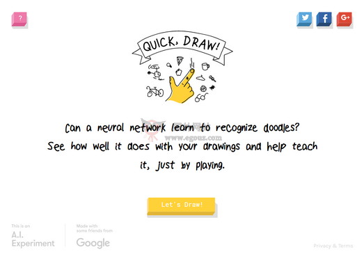 Quick Draw 是由Google 推出的一个在线涂鸦游戏,玩法有些类似「Draw Something」,Google 通过AI智能机器人来与用户互动,在20秒的画画过程中机器人会不停的猜测你在画什么东西,进而给你一个准确...