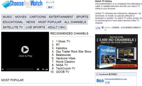 ChooseAndWatch:免费互联网电视平台是一个全免费的视频平台,用户不需注册就能收看喜欢的电视节目,无线安装任何插件,用户可以免费收看几百套电视节目。...