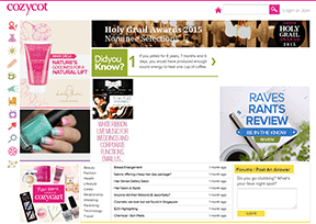 CozyCot是一个为女性而社的社交服务网站,公司成立于2001年,用户群体主要面向东南亚(主要为新加坡)。CozyCot网站发布潮流资讯,用户也可以分享购物心得,彼此互动,联络感情。...