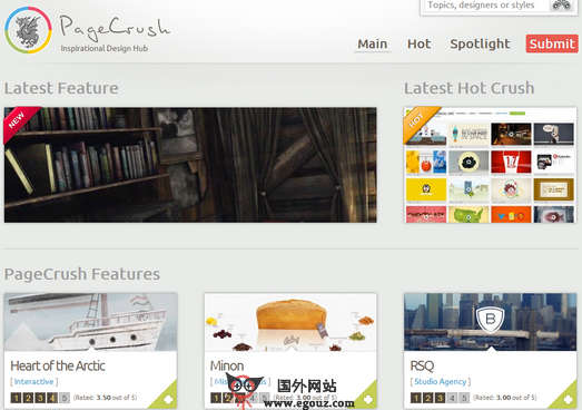 PageCrush:在线网页创意设计展示网是一个成立于2006年的网页设计展示分享网站,现在已经发展成为一个提交优秀网页设计作品的平台,旨在让来自世界各地的网页创意设计师们提交自己的设计作品,展示创意灵感网页作品,分享网页创意的心得。...