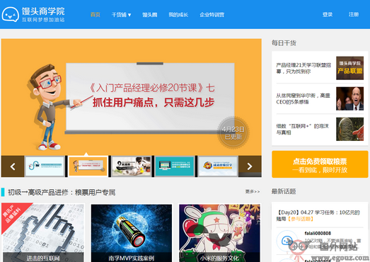 馒头商学院是一个基于互联网的学习平台,致力于帮助职场人士学习互联网知识,快速成长。精品课程覆盖互联网产品设计,互联网产品运营和互联网营销等方面内容。...