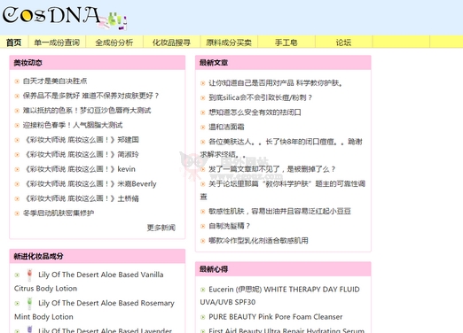 Cos DNA 是一个支持查询化妆品、保养品、彩妆、洗发精等成分数据的站点,目前支持快速检索市面上绝大多数的化妆品的成分及其安全系数,如果你对某一款化妆品存在疑问,不妨在这里查询。...