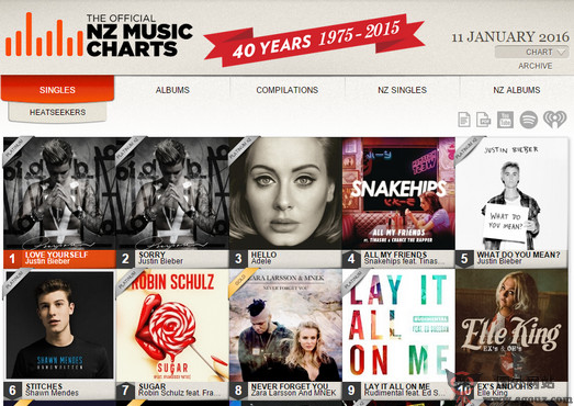 新西兰音乐排行榜(Official New Zealand Music Chart)是新西兰一个每周更新的最热单曲及专辑前40名榜单,所有排名的依据都来自新西兰各大销售商提供的数字音乐和实体音乐的销量数据。...