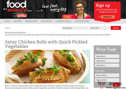 一分钟美食(Food in a Minute)是新西兰的一个免费的美食菜谱网站,所不同的是用户通过该网站可以在一分钟内制造出美味可口的饭菜,该网站收录了数百种丰富的美食制作教程,适合于朋友和家人...