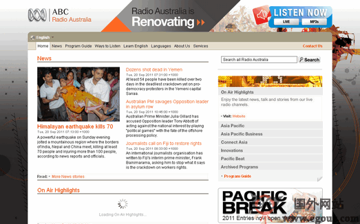 Radioaustralia:澳洲广播电台是澳大利亚澳洲广播电台官方网站,是澳大利亚国家广播公司(ABC)下属的国际广播机构。...