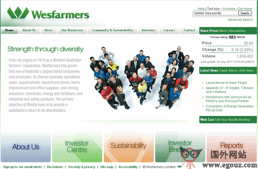wesfarmers com au是澳大利亚西农集团官方网站,是澳洲最大零售企业之一,成立于1914年,前身为西澳州农民合作社。...
