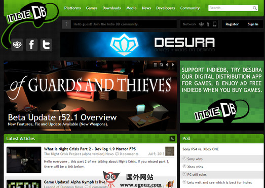 IndieDB:独立游戏开发发布平台是一家致力于发布来自于游戏开发人员的新闻报道,游戏Demo发布、游戏视频等,帮助游戏开发人员和玩家互动,帮助开发者能够开发出更好的游戏出来。...