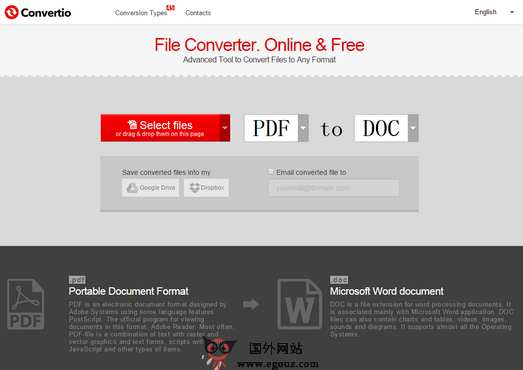 Convertio:在线免费文档转换工具是一款支持超过45种常见格式的文档转换工具,除了从电脑里把档案上传外,也能利用网址来上传文档,或是直接从Dropbox、Google Drive 云端选取文件,转档速度快,...