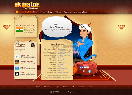 Akinator 是一个智能化的问答系统,由一位虚拟化的人物来提出问题,只要你能够把所有的问题回答完毕,那么你心里所想的就会被猜出来,准确度还是相对高的,不信的用户都可以试试看!...
