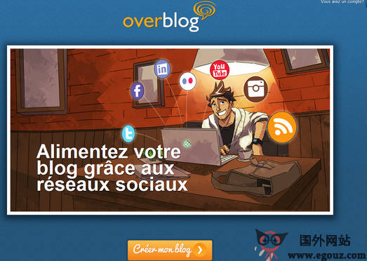 法国Over-Blog博客平台官方网站是一个博客平台网站,主要为各位网民提供各种各样的服务,可把你在各大社交媒体平台上发布的内容实时聚合到博客上。...