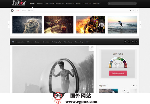 FuBiz:创意灵感设计分享平台是一个源于法国的每日新鲜灵感分享的网站,成立于2005年;该网站每天都会更新互联网上最优秀的创意文章、创意文化、当代平面设计、文化、产品、音乐和数字艺...