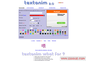 Extanim:在线动态字制作工具是一个在线制作动态文字特效的小站,功能很简单,但很实用,短时间生成的文字特效也挺好看,并且还支持中文。...