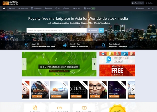 Motion Elements 是亚洲最大的影音素材免版税买卖平台,提供具亚洲风格的映像素材,并聚集志同道合的数位艺术家和电影制作人在此激发灵感与创意。...
