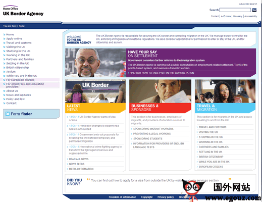 ukba homeoffice gov uk是英国移民局官方网站,其专门负责处理移民和非移民申请案、外国人的入境与出境、边界巡逻、逮捕并递解非法外国人、难民审查、惩罚非法雇用等等。...