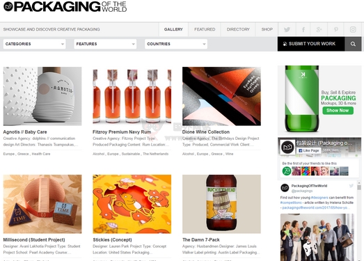 包装世界(Packaging of the World)是一个成立于2008年的创意设计资源库,展示了世界上最有趣最有创造性的作品,这个网站非常有条理,可以选择适合自己的类别。包括国家、学生作品、最受欢迎的...
