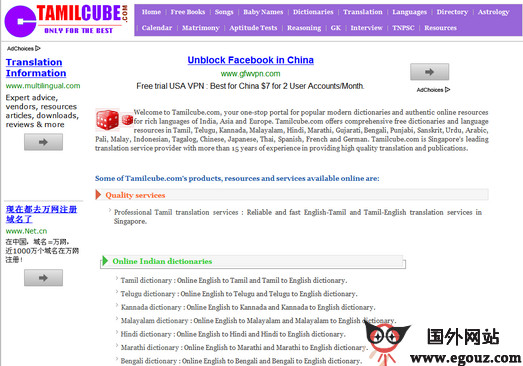 Tamilcube:新加坡多语种翻译网是新加坡一个主要的翻译服务网站,在线资源丰富。为人们提供全面的多国语言免费字典和语言资源。...