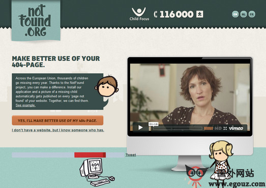 NotFound:公益404页面寻找丢失的孩子是一家公益组织Child Focus推出了一项名为“NotFound”的计划,利用网站的404页面来帮助找回那些走丢的孩子们。...