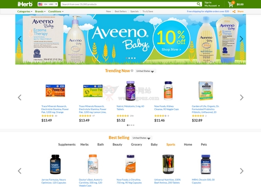 iHerb 是世界上非常具有知名度的销售天然产品的电商平台之一,成立于1996年,总部位于美国加利福尼亚州和肯塔基州,以销售健康纯天然产品和天然药品为主,目前网站在售超过1200个品牌和35000种品牌产品。iHerb 的销售网络面向全世界,其员工来自全球30多个国家和地区,用户遍布全球150多个国家,有多个知名运动补剂品牌在售,销售的产品均为天然产品。除保健品外还销售个人...