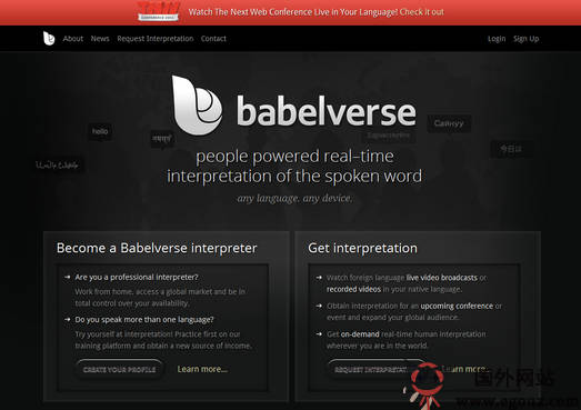Babelverse:实时语音翻译平台是一个致力于解决全球语言交流鸿沟的创业公司,该公司拟提供7000种语言的低成本即时口译平台服务。...