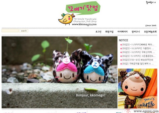 Kkomegii 是韩国的一个致力于布艺手工制作的网站,很多手工的布艺作品,活灵活现,非常可爱,虽然里面的布艺都是在线销售的,不过喜欢布艺的用户可以在这里欣赏丰富多彩的布艺创作作品,...