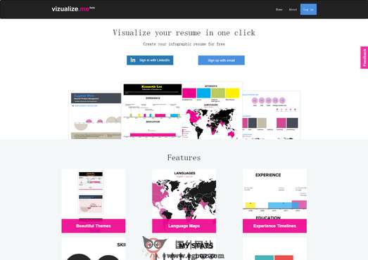 Vizualize:在线信息图表简历制作网是一个帮助应聘者利用社交美体的信息来制作出精美的信息图表式的个人简历,该服务可以导入你的LinkedIn简历信息,将它们制作为一个信息图示,通过创建一些...