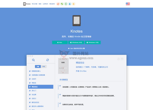 Knotes 是一款支持亚马逊Kindle设备看书标注和笔记的管理工具,可以将标注和笔记导出到印象笔记、PDF 导出和微信分享。它能让你在电脑上批量管理和编辑 Kindle 上的读书批注,并且另外导出,...