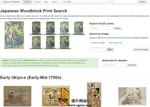 Ukiyo-E:日本浮世绘风俗画检索库是有John Resig创办,一个风俗画狂热爱好者;他通过各种方式寻找了很多的类似印花品,通过电脑收集起来展示为世人。...