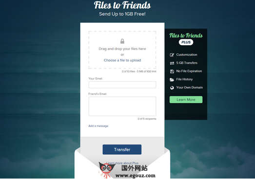 FilesToFriends:在线免费文件存储平台是一个免费的文件转存和分享的云存储平台,免费用户支持1G的空间,收费用户支持5G空间,所存储的文件可以通过电子邮件的方式来分享给你的朋友。Files to Friends 云存储的主要功能有:1、可以自定义背景图片和徽标;2、支持发送高清视频、照片、文件等资料;3、所上传的文件永不过期;4、支持用户浏览文件的历史记录,让你清楚的知道谁访问...