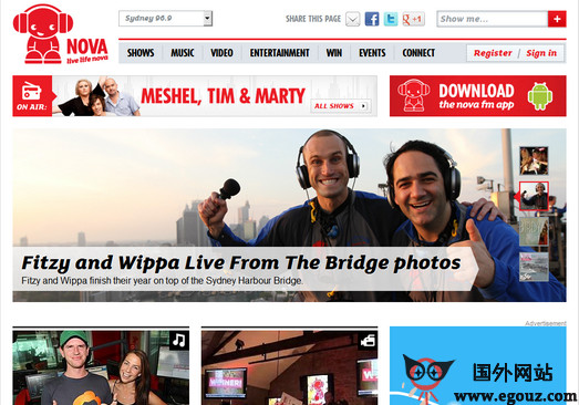 NovaFM:澳大利亚NOVA广播电台是澳大利亚DMG Radio公司旗下的一个网站,旗下有 Nova 969、Nova 100、Nova 1069、Nova 919 、Nova 937五个广播频道,为用户介绍澳大利亚的生活信息。...