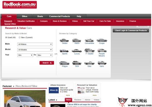 RedBook:澳洲车辆评估网是澳大利亚的一个汽车评估、汽车研究、汽车报价查询的车企站点,隶属于CarSales有限公司,该网站成立于1997年,并在多个国家开设分站,业务范围扩展到汽车、自行车、...