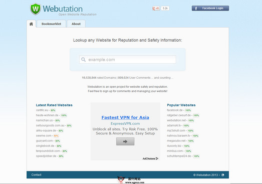 WebUtation:在线网站安全检测服务网是一个开放式的网站安全、网站信誉检测工具,用户只要输入需要检测的网址,该工具就会把包括Google 安全浏览、网站防毒检查、Norton Safe Web、WOT(Web of Trus...