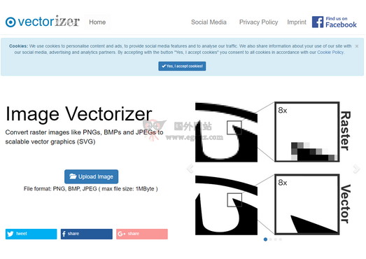 Online Image Vectorizer是一款免费线上点阵图转向量图工具,操作方法很简单,就跟一般转档工具差不多,而且无须注册就能使用,只要将转换的原始图片上传,利用内建选项来调整到你认为最满意...