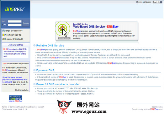 Dnsever:韩国免费DNS域名解析网成立于2004年,是韩国知名的免费DNS服务商之一,提供的服务很稳定,设置记录几分钟完成解析,界面支持韩语和英文。...