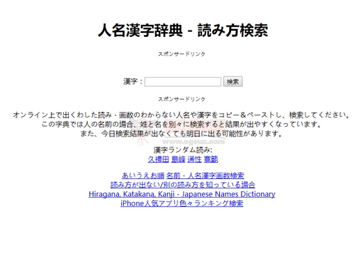 “人名漢字辞典”是一个在线版的《日本人姓名汉字读音辞典》,该网站比较全面地收集了日本姓氏汉字和人名汉字,用户可以查询不同名称的笔画数和写法。同时随机推荐相似的阅读词语。...
