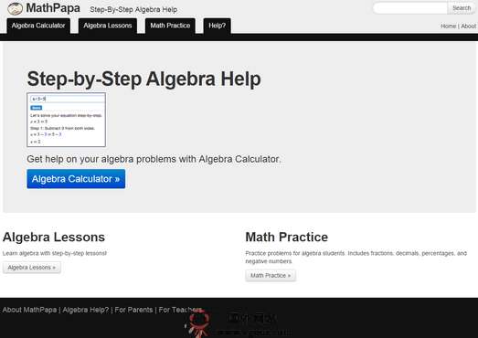 Mathpapa:在线数学解题工具是一个基于数学题目计算的在线工具,输入算式即可得到详细的截图步骤,让不会做数学题的你快速获得解题步骤,是学生、家长、家教们必备神器。...