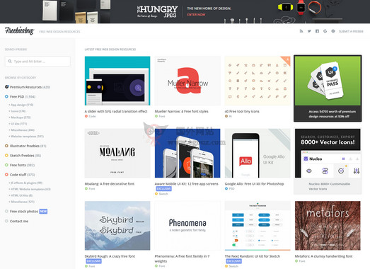 Freebiesbug 是专门为网页设计师们提供图片素材的资源站点,主要提供PSD源文件、illustrator矢量素材、更多的是网页设计方面的素材,如UI设计、网站模版、免费字体、HTML UI套件、Js特效等等,非...
