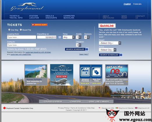greyhound ca是加拿大灰狗巴士长途汽车公司网站,提供长途及旅游客车服务,通过其网站可以查询班车时刻以及进行网上订票。...