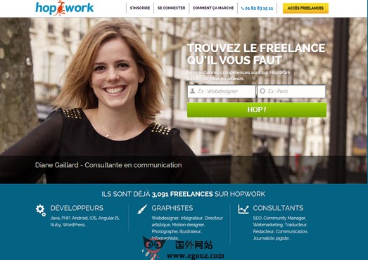 HopWork:自由职业者工作平台是法国的一家致力于自由工作者寻找工作的网站,在这里你可以找到最好的开发者,设计师,编程人员,营销人员,目前已经3091名自由职业者加入该平台。...