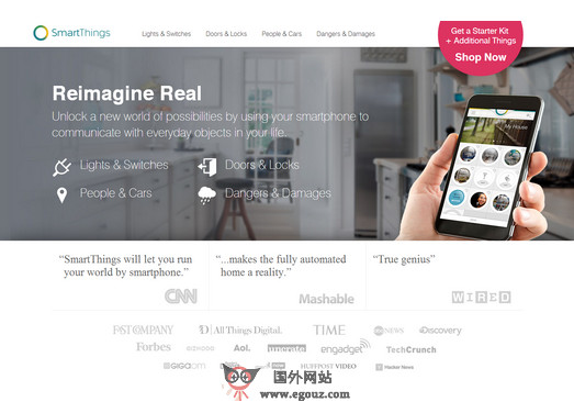 SmartThings:智能家居设备控制平台是一个可以通过手机应用程序遥控灯光、咖啡机,甚至是门锁的联网型家庭自动化平台,该平台创始于2012年,是 Kickstarter 的项目之一。SmartThings 是一个开放的平台,能通过多种无线标准(如蓝牙,ZigBee 和 Z-Wave)与各种协议和第三方设备对接。该公司刚刚推出了名为SmartThings Shop的网上商店,专门销售 SmartThings 本品牌以及可与其对接的第三方家居自动...