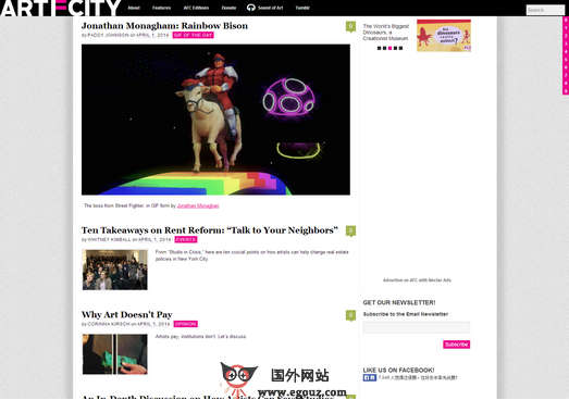 ArtfCity:纽约艺术新网评论网是一个美国纽约艺术新网、评论和文化评论的艺术类新网网站,结合批评、报告、八卦等组合报道的方式来提供社会艺术的现状和发展趋势。An ambitious option [to mainstream print criticism] that combines criticism, reporting, political activism and gossip on an almost24hour news cycle. That mix would probably be even more varied, and transcultural, if a few forwardthinking, artminded investors would infuse some s...