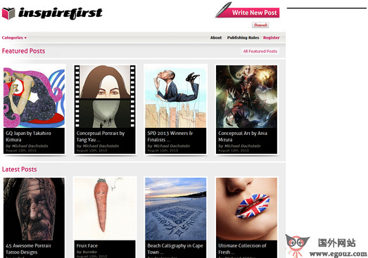 InspireFirst:创意设计灵感分享网是一个与世界分享灵感的站点,为所有设计师、画家、摄影师、建筑师和其他专业人士与兴趣爱好者提供丰富的灵感资源。...