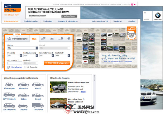 AutoScout24:欧洲二手车分类信息平台是欧洲一家二手车辆的分类广告网站,创建于1998年,总部位于法国巴黎,创始人是Carbonari和Deskovic。...