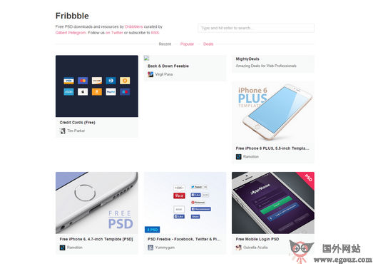Fribbble 网站是一个提供网站适用图示、一些iPhone 模型及建立登录页面的PSD 档等资源,咋一看感觉是Dribble网站,不过也不差多,该网站是从Dribble网站获得免费的PSD资源,并整合在一起提供给设...