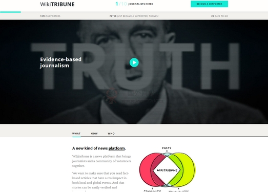 Wikitribune 是由维基百科的联合创始人 Jimmy Wales 创办的一个致力于真实新闻报道的站点,借鉴维基百科的众包模式做一个没有假新闻的新闻网站,让真相通过大众传播给大众。Wikitribune 通过网民众筹的方式支付专业的新闻记者工资,邀请他们针对特定的选题做专业的新闻报道。Wales 希望这个网站上的新闻能涵盖大部分的新闻议题,从政治到科技,它都会涉及到。那些在网站上捐款...